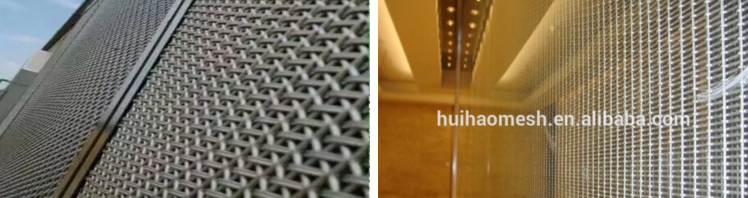 Decorative wire mesh is used for exterior facades, wall coverings, draped and suspended ceilings, column cladding, sunshades and canopies,